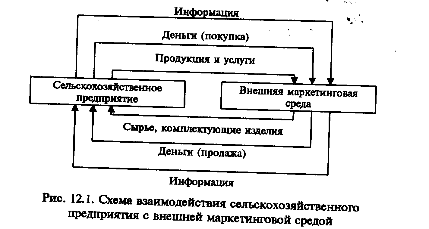 Система агромаркетинга включает в себя комплекс наиболее существенных рыночных отношений и информационных потоков, которые связывают сельскохозяйственное предприятие с рынками сбыта ее товаров (рис. 12.1).