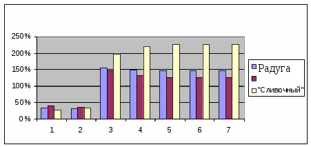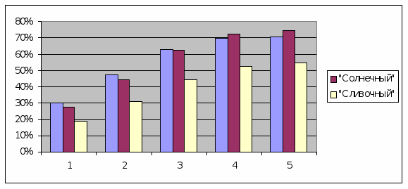 2) исследования, касающиеся доли рынка фирмы, говорят о постепенном вытеснении фирмой её основных конкурентов – марок «Солнечный» и «Сливочный»;