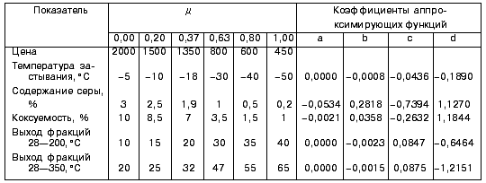 Для расчета приведенных значений параметров нефти необходимо для каждого значения параметра найти ближайшие узловые точки и рассчитать по ним аппроксимирующую функцию, в качестве которой примем линейную функцию вида x = a х p + b, где р — значение параметра, х — приведенное значение параметра.