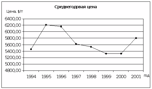В 1998 г. после августовского обвала рубля цены на олово поднялись с 39,2 тыс. рублей/т. в январе до 105 тыс. рублей/т. в декабре, а в феврале 1999 г. они достигли 135 тыс. рублей/т. при мировой цене 5265,25 $/т. (ЛБМ)2.
