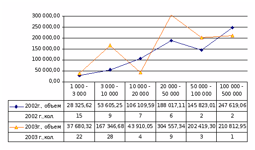 В целях уменьшения операционных затрат российские компании стараются заключать договоры на значительные суммы, от 200 тыс. долларов и выше. Причина — отсутствие серьезной конкуренции и возможность выбора наиболее привлекательных проектов. Только некоторые компании, прежде всего федеральные и муниципальные, готовы работать с небольшими проектами («Балтлизинг» - от 4 тыс. долларов, МЛК от 15 тыс. долларов)[5].