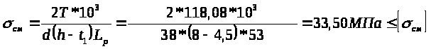 Допускаемое напряжение смятия [см] = 50…60 МПа [2, с. 252]