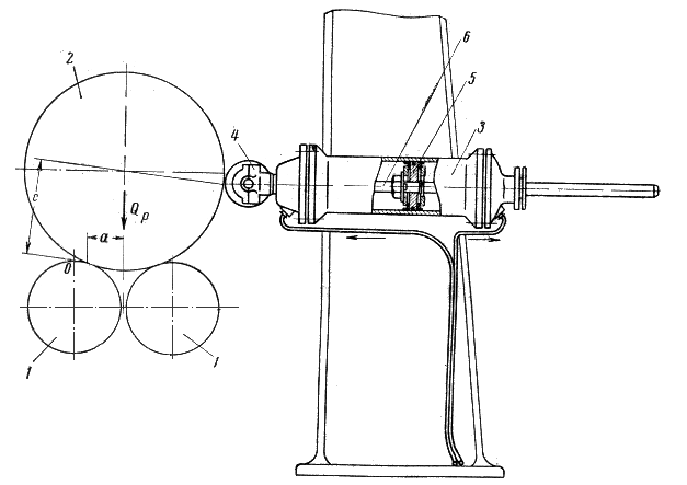Общая вертикальная нагрузка Q>o> на несущие валы складывается из веса намотанной бумаги Q>б>, веса намоточного вала (если он установлен) Q>н> и давления Q>п> прижимного вала на рулон