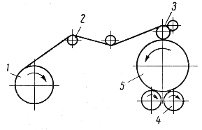 Большое количество имеющихся схем периферической намотки может быть сведено к двум принципиальным схемам: с верхней и нижней заправкой бумаги. Станки с верхней заправкой имеют несколько основных конструктивных решений: