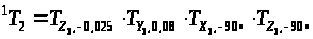 Определение однородной матрицы преобразования для второй точки позиционирования рабочего органа:
