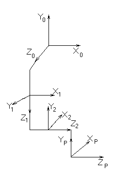 [X>Р>,Y>Р>,Z>Р>] – связанная система координат рабочего органа