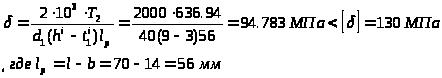 Напряжение смятия боковых граней шпонки, установленной на выходном участке вала: