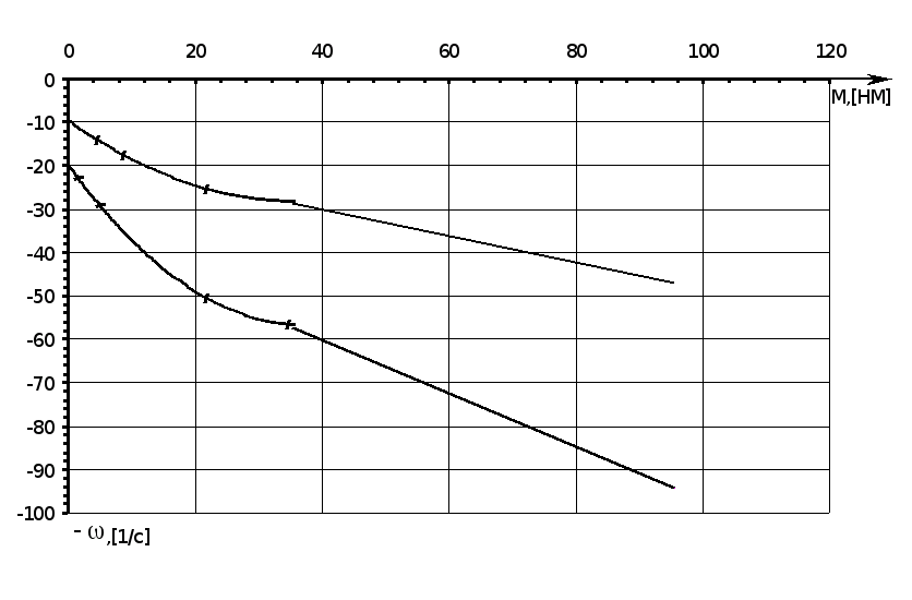 3.4. Рассчитать и построить = f(M), также рассчитать сопротивление добавочного резистора при ЭДТ с независимым возбуждением, если характеристика должна проходить через точку = >н>, – М = 1,2М>н>.