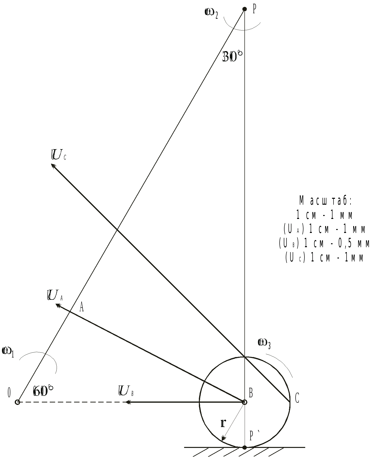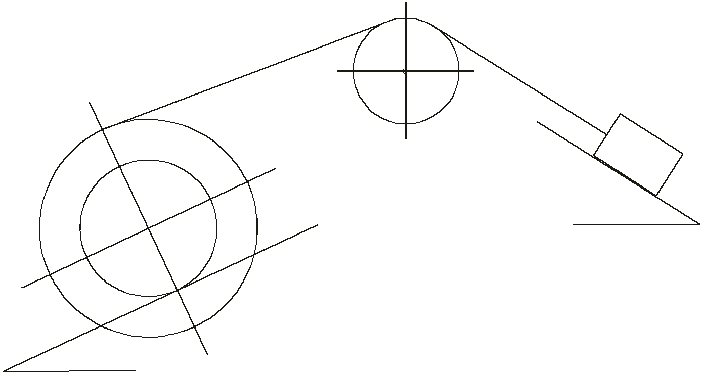 Определим, на кокой угол повернётся каток 3 при прохождении грузом 1 расстояния S: