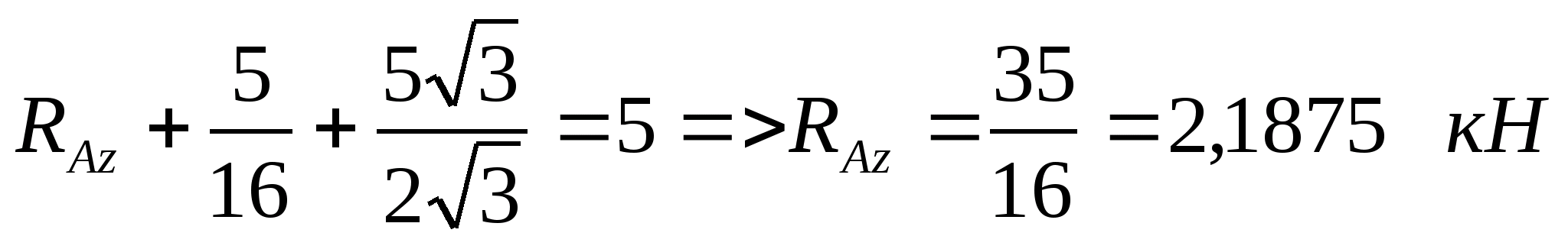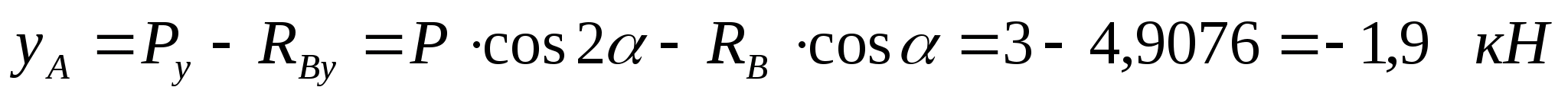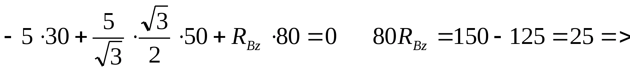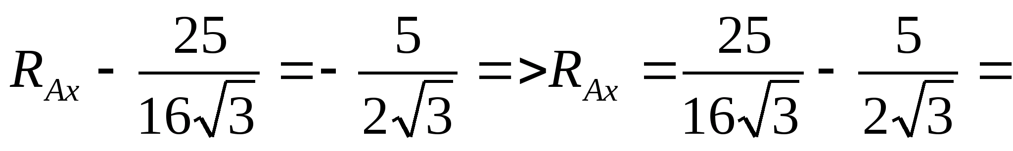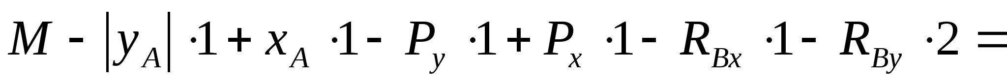 Составим уравнение равновесия системы сил. Для равновесия произвольной плоской системы сил необходимо и достаточно, чтобы суммы проекций всех сил на оси координат были = 0, а также сумма моментов всех сил относительно какой-либо точки плоскости была = 0.