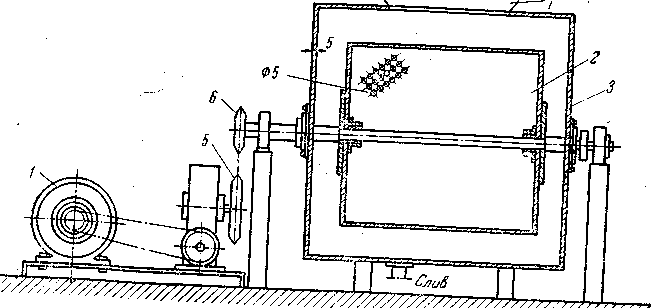 заключенный в неподвижном кожухе (рис. 17). В барабан заливается 100 кг воды и загружается 300 кг отходов. Крышку сетчатого барабана закрывают, и он приводится в движение с числом оборотов 60 в минуту. Процесс растворения заканчивают через