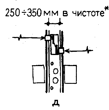 г — расположение двух кухонь у одной стены (каналы вытяжной вентиляции расположены в другом месте); |