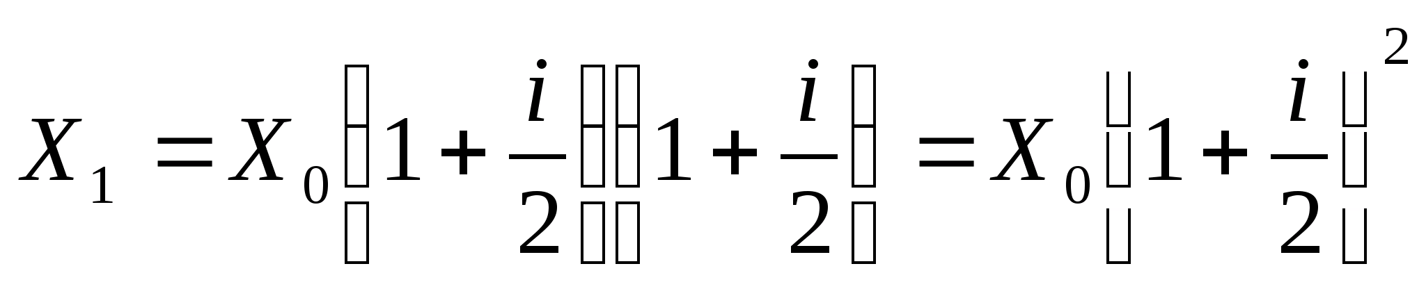 То, что мы рассматривали в предыдущем пункте подразумевало, что выплата аннуитета или пожизненной ренты, а другими словами начисление процента на номинал осуществляется за каждый период времени всего лишь один раз. В реальности же, хотя владельцам облигаций эмитенты обязуются выплачивать годовые проценты на номинал, сама выплата или начисление происходит чаще всего два раза в год. В этом случае сумма X>0>, вложенная в какой-то инструмент с фиксированным годовым процентом i, начисляемым дважды в год, через год будет равна: