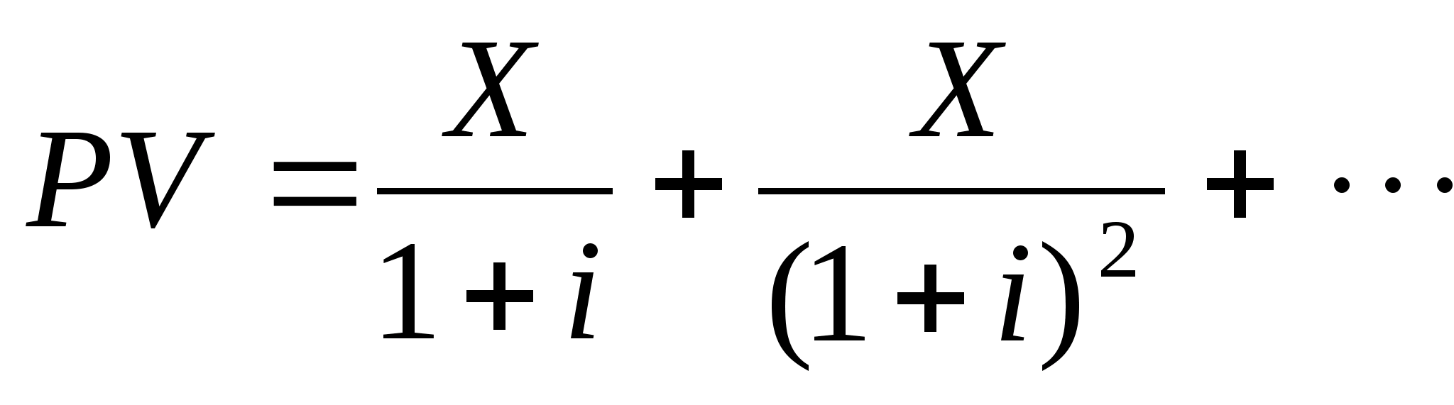 Где i - это процентная ставка, Х - сумма, выплачиваемая каждый период, а PV - это сегодняшнее значение искомой суммы. Фактически мы имеем дело с бесконечно убывающей геометрической прогрессией. Обозначив Х/(1+i)=а и 1/(1+i)=b получаем более упрощённый вид: