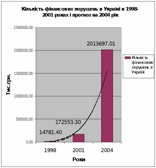 Аналіз системи державного фінансового контролю дає змогу сказати на підставі статистичних даних, що останнім часом кількість виявлених фінансових порушень загалом по Україні зросла. Так, у 2001 році було виявлено фінансових порушень на суму 172553,3 тис. грн., тоді як у 1998 році – 14781,4 тис. грн. [12]