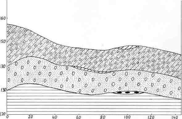 В качестве примера геологического строения промплощадки приведем схематический разрез хранилища рудопромывки (рис. 1).