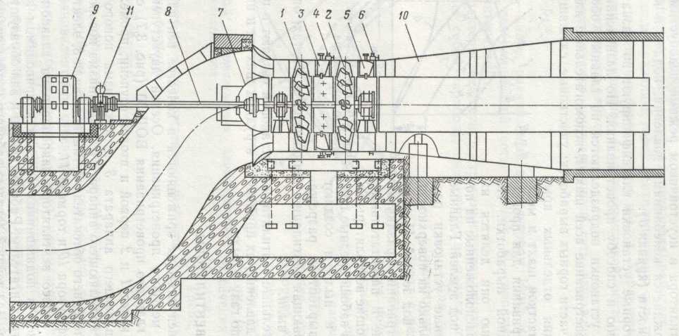 лятора2, обводной канал 7 и канал 1 в шахту.