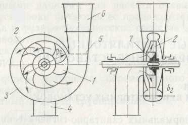 рабочего колеса 1 с лопатками 2, кожуха