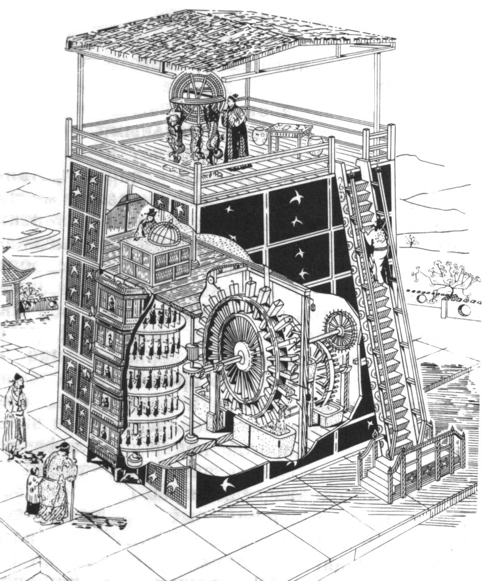 Очень старую традицию водяные часы имели в Китае. Верхом совершенства несомненно был проект больших пагодных астрономический водяных часов, разработанный в 1090 году и осуществленный Су-Сунгом .