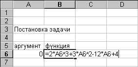 вместо переменной x укажем адрес клетки В5. которая содержит значение начального приближения решения