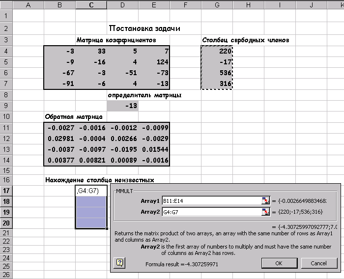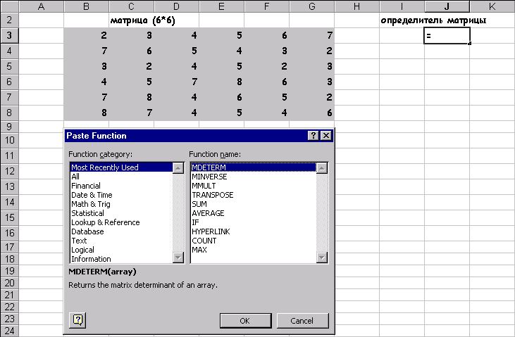 Электронная таблица EXCEL имеет ряд встроенных функций для работы с матрицами: