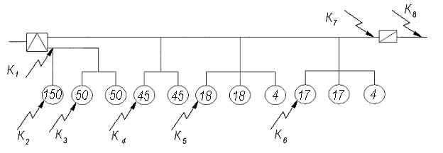 Смысл расчета в том, чтобы найти суммарно приведенные длины кабелей от трансформатора до каждой точки короткого замыкания.