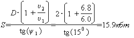 Рассмотрим ситуацию расхождения двух судов, идущих с тралами на встречных курсах. Пусть наше судно движется со скоростью 6,0 узлов ИК1=00. После снятия двух пеленгов и двух дистанций на маневренном планшете определили параметры движения встречного судна В V=6,8 узлов, ИК2=1800. Полагаем, что поворот будет производиться только нашим судном. Необходимая дистанция расхождении при траверзе судов 2,0 кабельтовых. Поскольку угол отворота 150 для нас задан условием задачи, то ее решение сводится к определению минимальной дистанции между судами, при которой выполнение условия расхождения в 2-х кабельтовых еще возможно. Для ее расчета воспользуемся формулой: