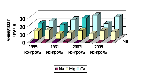 Розущільнення, і як наслідок, покращання водно-фізичних властивостей солонців виявляють позитивний вплив на характер пересування водорозчинних солей по всьому ґрунтовому профілю. Збільшення запасів вологи та її капілярно-ґрунтове пересування з поверхні ґрунту вниз обумовлює розчинення і вимивання солей в товщу ґрунту. Величина і швидкість їх вимивання залежать головним чином від ступеня дисперсності ґрунтових часток, структурних властивостей і від складу самих солей в ґрунті [184]. Більшість дослідників відзначають значне зниження вмісту токсичних солей, вимивання хлоридів, зменшення вмісту водорозчинного натрію по усій товщі меліорованого шару вже в перші роки після проведення меліоративної плантажної оранки [13,86,123,131,175,193,223,224,226,]. Окремі дослідження констатують інтенсивне розсолення солонців на глибину до 3 метрів[184,224,225]. Численними дослідженнями встановлено, що на фоні вимивання легкорозчинних солей обмінний натрій активно заміщується на кальцій, тобто відбувається розсолонцювання ґрунту [38,86,107,123,175,224]. Однак, вивчення поглинального комплексу темно- і лучно-каштанових плантажовананих ґрунтів (тривалість післядії меліоративної плантажної оранки 25 років [201,204] показало, що він характеризується яскравим складом, що пов’язане з кількістю переміщеної маси по профілю. Найбільша сума обмінних катіонів виявляється у верхньому шарі з її поступовим зменшенням до низу, або вона рівномірно розподіляється по профілю. Особливо різко зростає в орному шарі кількість кальцію, у підорному горизонті його кількість вирівнюється чи незначно збільшується. У 65 % випадків кількість увібраного натрію збільшується в орному шарі, а у 35 % зменшується. У підорному шарі спостерігається зворотна картина, у 65 % випадків - зменшення, у 35 % збільшення [201]. Разом з тим багаторічні (довше 15 років) спостереження за динамікою легкорозчинних солей та вмістом увібраних катіонів в агроперетворених солонцях Волгоградської області [131] показали, що ґрунтам властиве коливання рівня засолення і вмісту увібраного натрію у поглинальному комплексі меліорованого ґрунту у багаторічному циклі. Суттєвий вплив на ці процеси виявляють погодні умови.