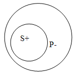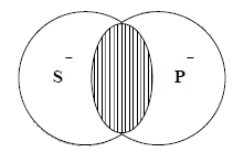 Как видим, и субъект и предикат изображаются неполными кругами (у каждого из них как бы отрезана какая-то часть), следовательно, оба термина предложенного суждения не распределены (S–, P–).