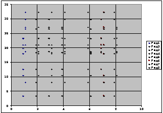 По диаграмме рассеяния находим медианы точек лежащих слева и справа. По медианам находим величины вклада каждого фактора: