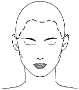 БРОВИ. У модели они хорошо выражены, но светлые и их нужно акцентировать. Поэтому необходимо внешнюю половину снизу выщипать, сделав чуть уже. Всю бровь немного затемнить темно-коричневым карандашом и на несколько миллиметров удлинить острый кончик. Тщательно причесать по форме.