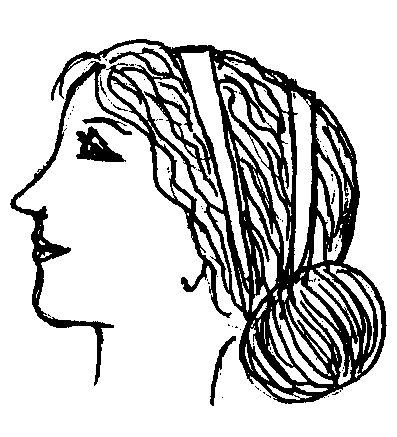 При этой прическе длинные волосы расчесывали на прямой пробор, завивали волнами и довольно низко спускали вдоль щек, а сзади приподнимали и на затылке укладывали в узел, скрепляя шпильками и узкими ленточками.