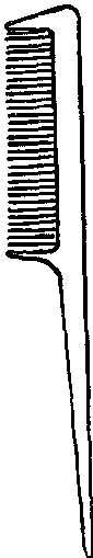 Расческа с тонкой длинной ручкой и частыми зубьями (ее называют «хвостик») – основная рабочая расческа. Ею удобно отделять пряди волос. Она может быть пластмассовой и металлической. Металлическую хорошо использовать для начеса, но при выполнении химической завивки и окрашивания волос ее применять нельзя, так как металл будет вступать в реакцию с препаратами для химической завивки и химическими красителями. Для стрижки можно использовать как пластмассовую, так и металлическую расчески.