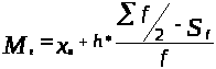 2. Модальный интервал [2130-2530], т.к. частота этого интервала наибольшая (f=28). Мода:
