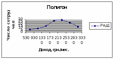 Выводы: средний доход составляет 2134.88 грн./мес., а дисперсия – 404203.85. Самый распространенный доход 1907,78 грн./мес. Половина служащих получает зарплату менее 2178.28 грн./мес., а половина – меньше 2178,28 грн./мес.