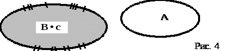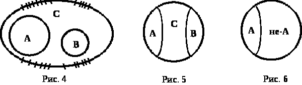 Приведенные случаи являются случаями совместимости понятий по объему. Однако понятия могут быть и несовместимыми по объему. Например, в высказывании – "Несовершеннолетние (A) не имеют права голоса (B)" – A и B несовместимы. На круговой диаграмме это отображается так, как показано на рис.4. Нетрудно видеть, что и A, и B могут входить в общий для них род (C).