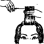 Вертикальным пробором от макушки к краевой линии роста волос выделяется прядь шириной 1 - 1,5 см. |