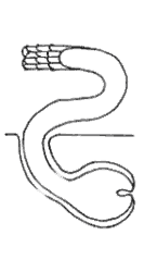 Прямые волосы располагаются в коже почти перпендикулярно поверхности, вьющиеся — с легким изгибом, а курчавые — S-образно. Если разрезать волос поперек, то срез прямого волоса будет круглым, вьющегося — овальным, курчавого — еще более сплющенным, напоминающим ленту(рис.5).