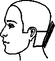 стричь с внешней стороны ладони, ориентируясь на длину макушки с увеличением длины волос как показано на рисунке. |