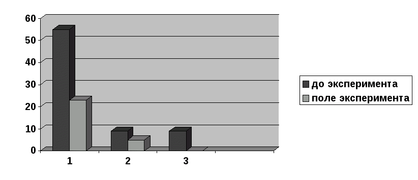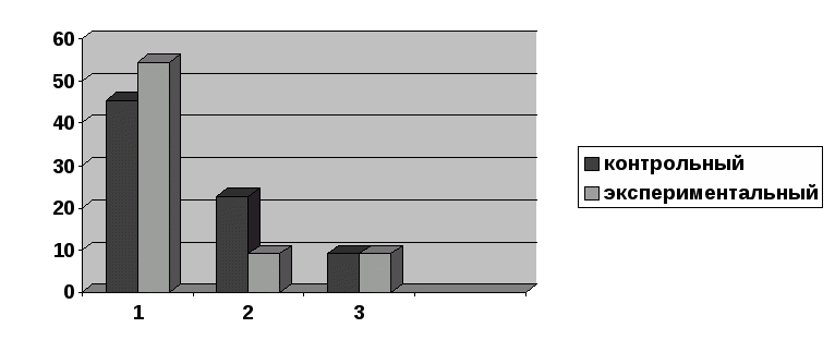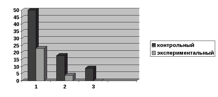 Рис. 3 Гистограмма, отражающая количество грамматических ошибок, допущенных учащимися контрольного и экспериментального класса после формирующего эксперимента