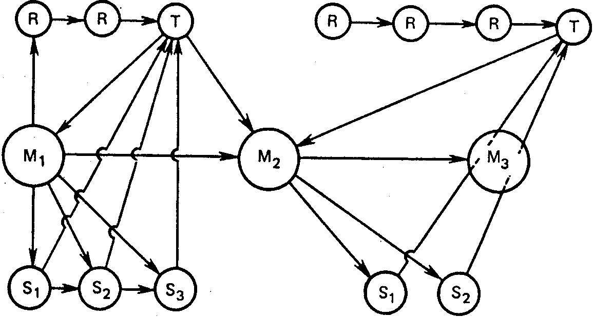 Рассмотренные блоки являются как бы кирпичиками, которыми автор программы может свободно манипулировать, создавая из них программы с различной структурой. В некоторых ситуациях исходным пунктом данной единицы программы может быть и не блок И, а, например, блок /7 или ТИ. В качестве фактора, определяющего ту или другую структуру программы, выступает поставленная дидактическая задача.
