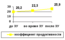 Изменения интенсивности (определяется по количеству всего просмотренных знаков всеми учениками, до ЭУ, во время и после ЭУ) представлены на графике 1.