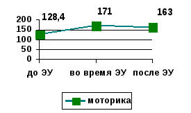 Проанализировав данные мальчиков, видим в первой половине ЭУ отрицательную тенденцию по интенсивности и продуктивности и положительную тенденцию по точности и моторике. Во второй половине ЭУ положительная тенденция по всем показателям. Отдельно отметим, что для мальчиков при анализе моторики брали левую руку, так как из 5 мальчиков в данном классе у 3 доминирует левая рука.