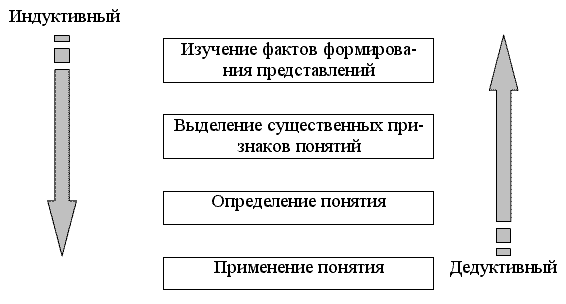 Процесс формирования понятий состоит из мотивации введения понятия, выделения его существенных свойств, усвоения определения, применения понятия, понимания связи изучаемого понятия с ранее изученными понятиями. Формирование понятия осуществляется в несколько этапов: