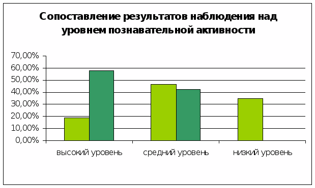 Результаты наблюдений показаны в виде диаграмм ранее. На данном этапе работы мы представим сводную диаграмму итогов наблюдений до применения проблемного обучения и после него:
