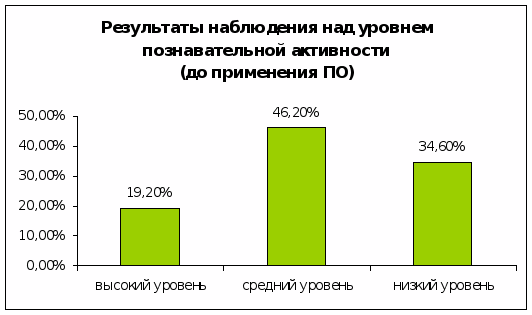 Сравнив результаты первого этапа (до применения проблемного обучения) и второго этапа (после применения проблемного обучения) можно сделать вывод о том, что внедренное нами проблемное обучение оказало положительный эффект на отношение школьников к учебной деятельности и на качество их учения, так как повысились уровни познавательного интереса, самостоятельности и активности детей в учении.