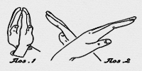 Одновременно на обеих руках положить 2-е пальцы на 3-е и наоборот.