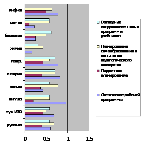 В результате анкетирования нами были выявлены трудности, которые испытывают учителя при планировании учебного процесса.