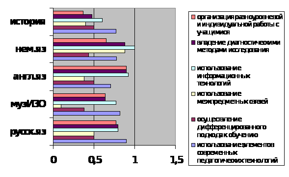 В ходе наблюдения за учителем английского языка с целью оценки анализа учебного материала мы отметили, что учитель находится на среднем уровне реализации обучающей деятельности. Но урок английского языка проведен учителем методически правильно, учебные цели в основном достигнуты.