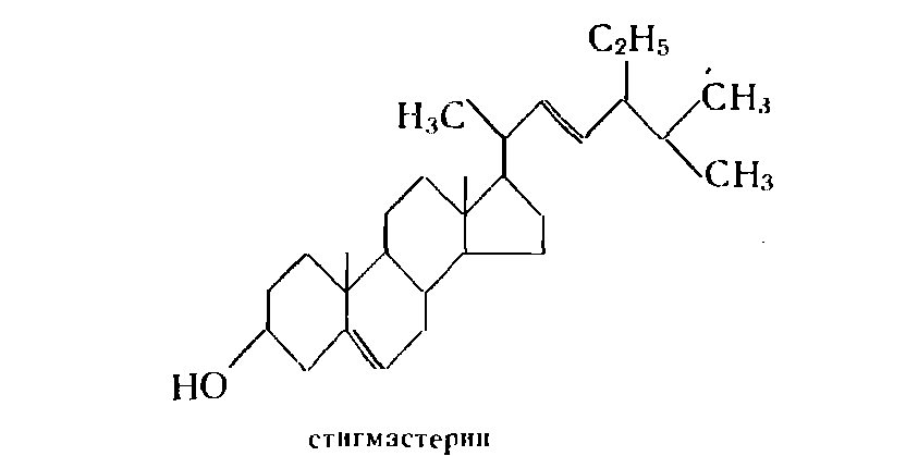 Стигмастерин С>29>H>48>О — один из наиболее распространенных фитостеринов, он содержится в большом количестве в соевом масле и сахарном тростнике. По структуре стигмастерин отличается от холестерина наличием двойной связи между 22 и 23-углеродными атомами и наличием этильной группы в положении 24: